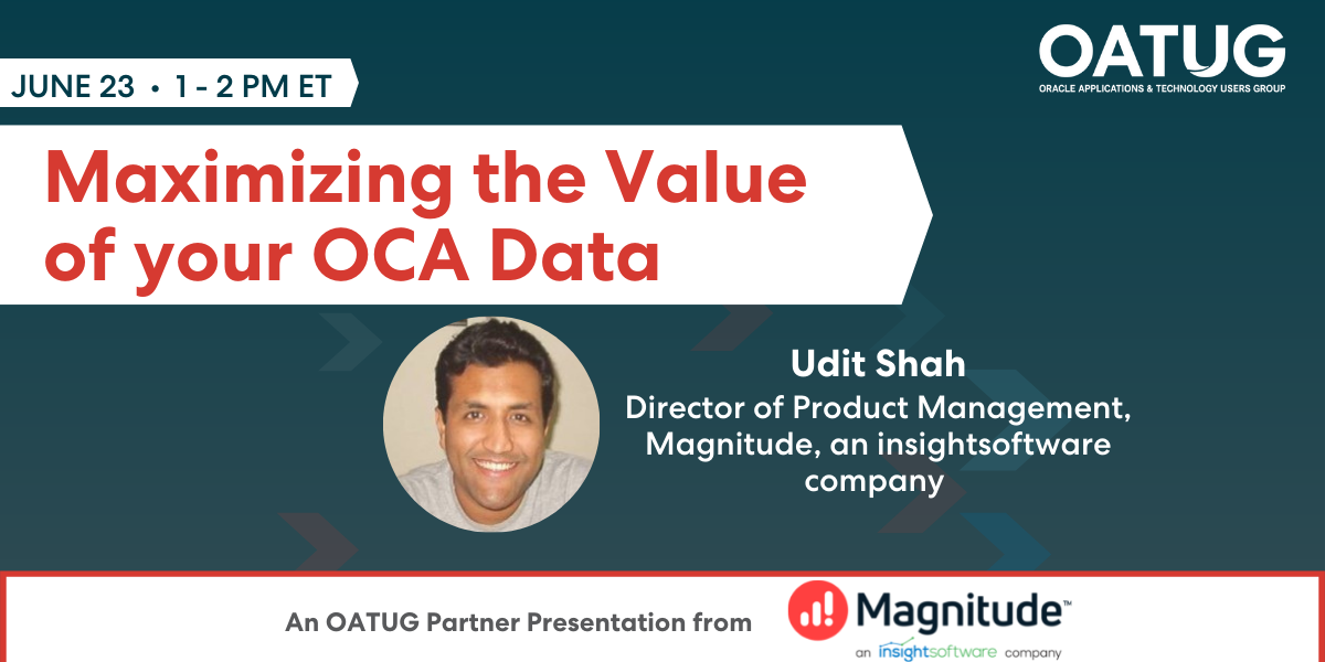 To learn more, be sure to attend Maximizing the Value of Your OCA Data, presented by Udit Shah June 23 at 1 p.m. ET. Everyone is welcome to attend the free live webinar.