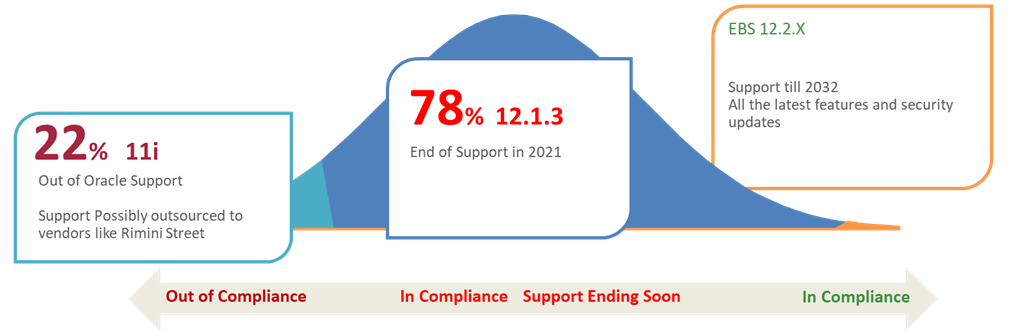 If you are running on older versions of EBS like 11i or R12.1.3, you’re also running out of time. EBS 12.1.3 users will find themselves without support at the close of 2021. Earlier models of EBS, such as 11i, are already out of compliance and no longer eligible for Oracle Support.