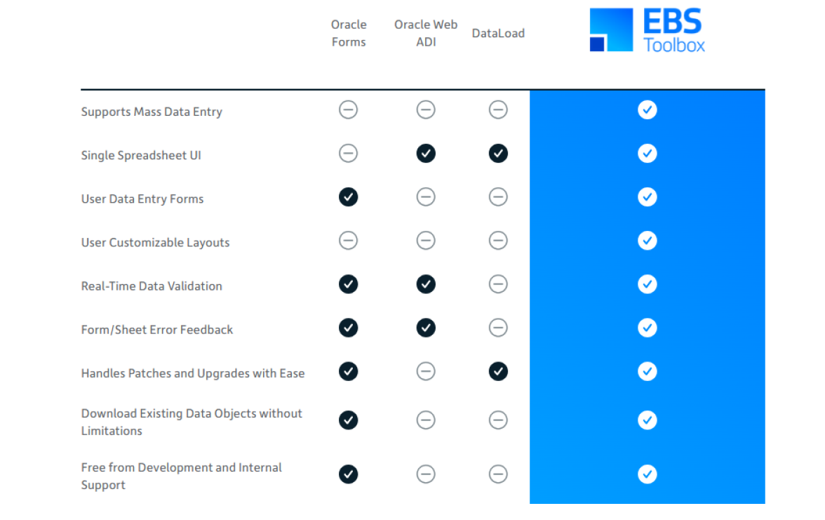 Your Oracle EBS investment already holds the tools for greater productivity. The first step toward turning your investment into measurable ROI starts with the right tools—intuitive tools designed for end users that simplify complex data-loading tasks, cut down their manual effort, and give them full control of their data, without costly upgrades or IT dependency.